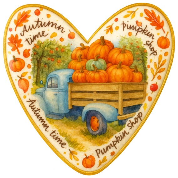 Ciastko lukrowane BLUE BUS PUMPKIN roz.XL SERCE Jesień ręcznie robione