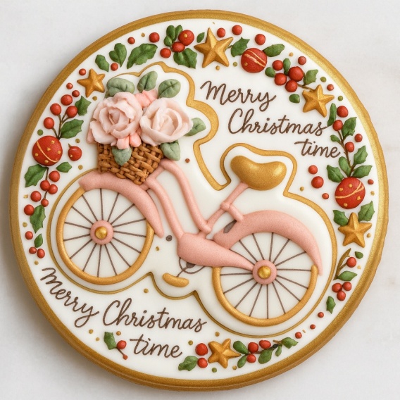 Ciastko lukrowane BlossomE cafe VELO PINK roz.S KOŁO ręcznie robione