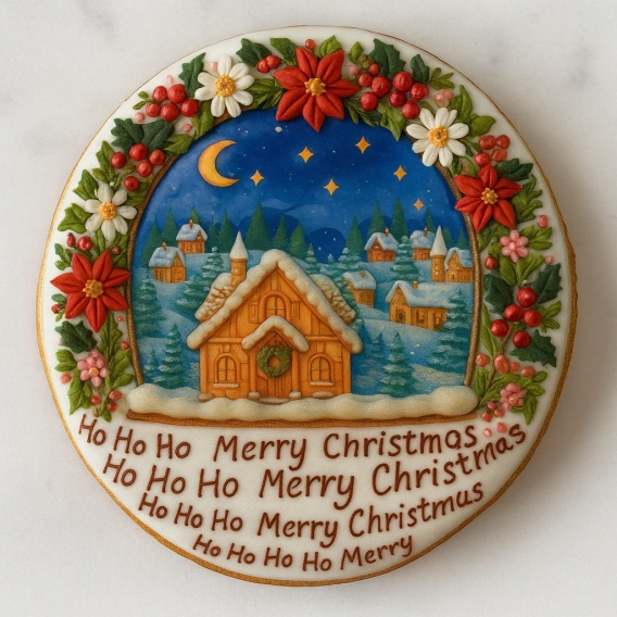 Ciastko lukrowane DOMEK NOC ZIMA BOŻE NARODZENIE KOŁO roz.S ręcznie robione