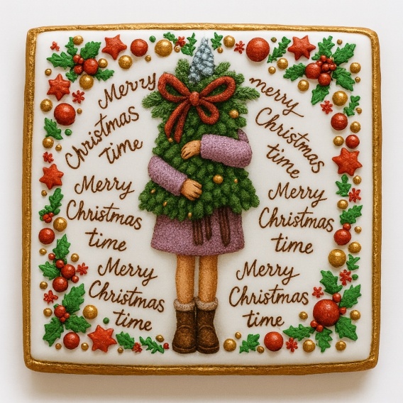Ciastko lukrowane Dziewczynka z Choinką kwadr No6 roz.M ręcznie robione