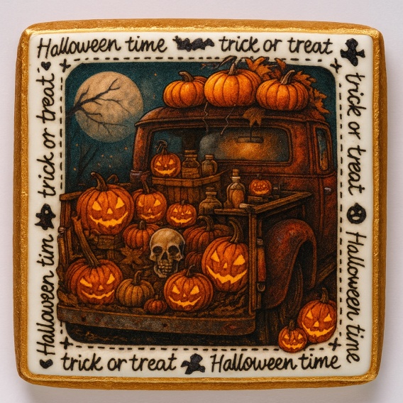 Ciastko lukrowane GHOST CAR roz.S KWADRAT AT HALLOWEEN ręcznie robione