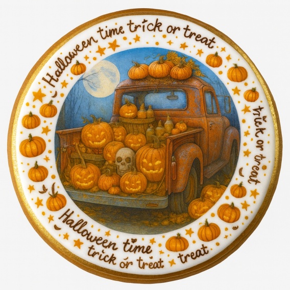 Ciastko lukrowane GHOST NIGHT CAR roz.L KOŁO No.1 HALLOWEEN ręcznie robione