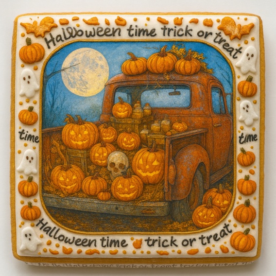 Ciastko lukrowane GHOST NIGHT CAR roz.M KWADRAT AT HALLOWEEN ręcznie robione