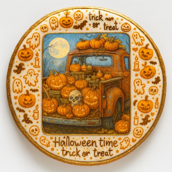 Ciastko lukrowane GHOST NIGHT CAR roz.S KOŁO HALLOWEEN ręcznie robione