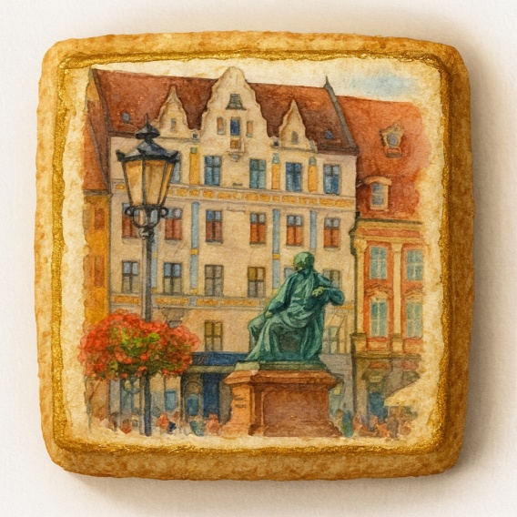 Ciastko lukrowane KAMIENICE WROCŁAW PAMIĄTKA KWADRAT AT A roz.M ręcznie robione