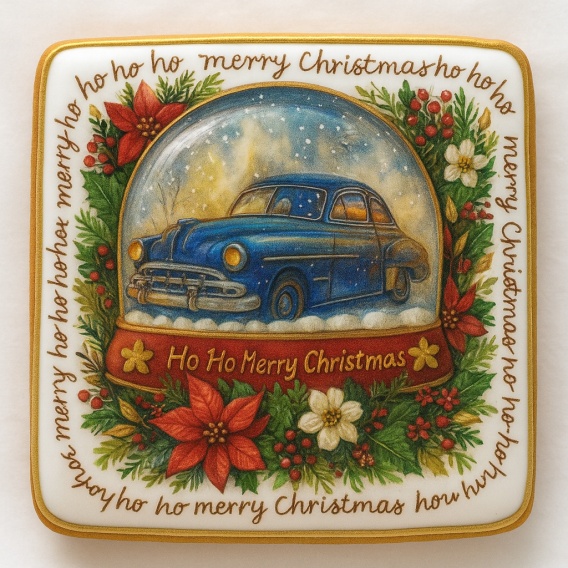 • Ciastko lukrowane KULA AUTO OLD BOŻE NARODZENIE KWADRAT roz.L ręcznie robione