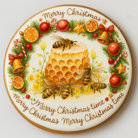Ciastko lukrowane Logo pasieka pamiątka MIODEK KOŁO No.6 roz.L ręcznie robione