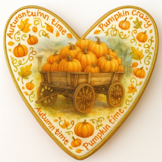Ciastko lukrowane OLD PUMPKIN WAGON roz.S SERCE Jesień ręcznie robione