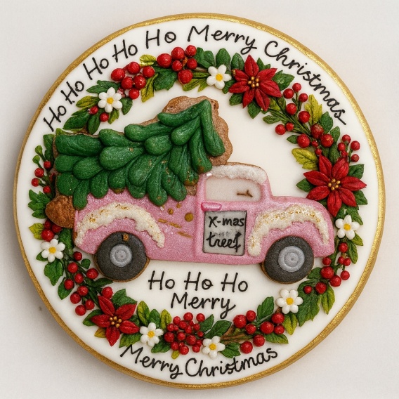 Ciastko lukrowane PICK UP PINK BOŻE NARODZENIE KOŁO roz.L ręcznie robione