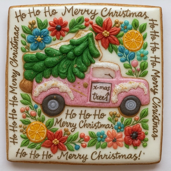 Ciastko lukrowane PICK UP PINK BOŻE NARODZENIE KWADRAT roz.M ręcznie robione