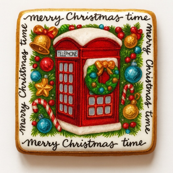 • Ciastko lukrowane PUBLIC PHONE NO2 BOŻE NARODZENIE roz.XL KWADRAT AT ręcznie robione