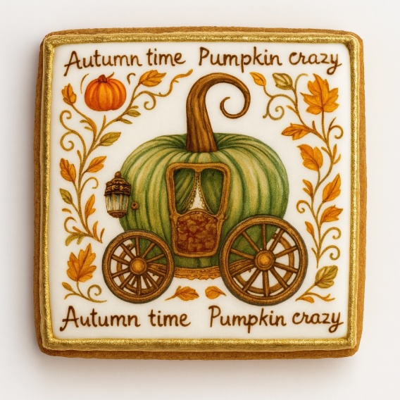 Ciastko lukrowane PUMPKIN CARRIAGE GREEN roz.M PION JESIEŃ ręcznie robione