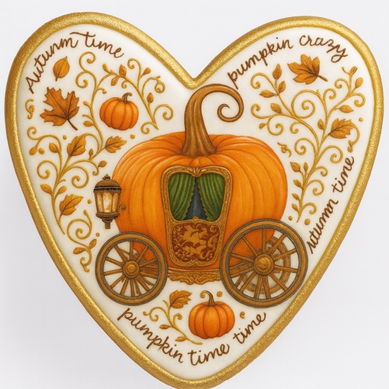 Ciastko lukrowane PUMPKIN CARRIAGE ORANGE roz.L SERCE JESIEŃ ręcznie robione