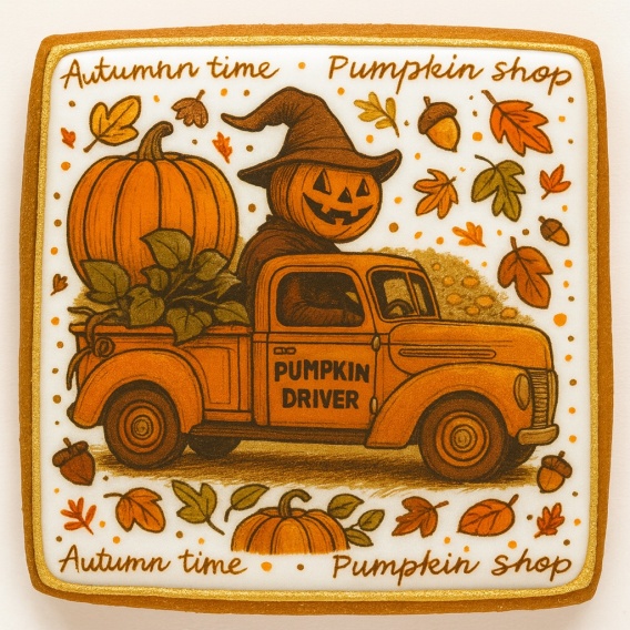 Ciastko lukrowane PUMPKIN DRIVER roz.XL POZIOM No.1 Jesień ręcznie robione