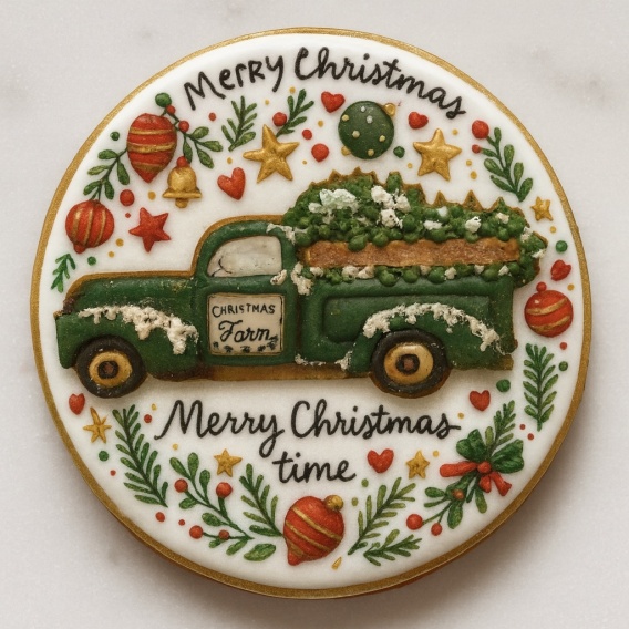 • Ciastko lukrowane Pickup z choinką koło No3 roz.L ręcznie robione