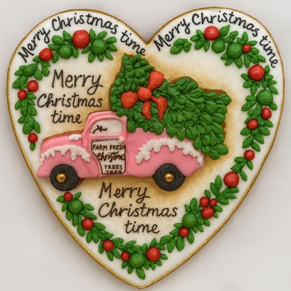 Ciastko lukrowane Pickup z choinką serce No1 roz.XL ręcznie robione