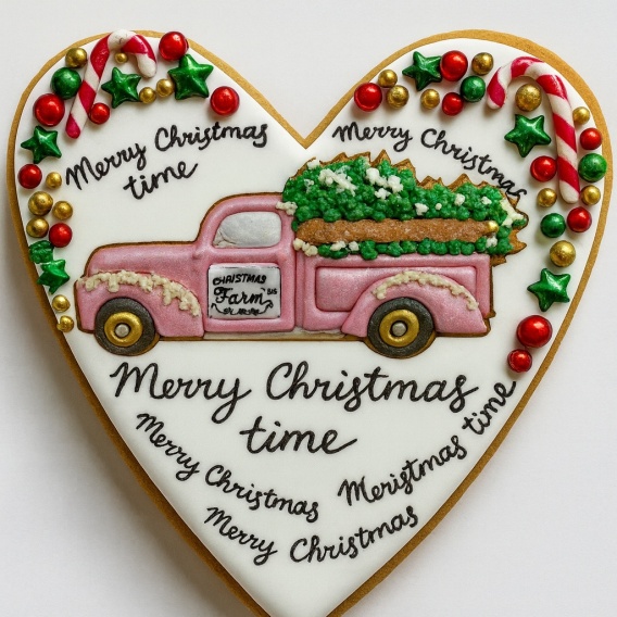 Ciastko lukrowane Pickup z choinką serce No5 roz.XL ręcznie robione