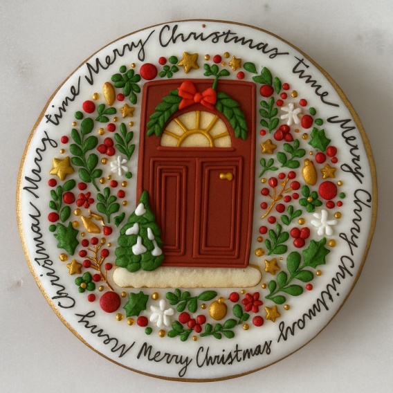 • Ciastko lukrowane Świąteczne drzwi koło No3 roz.M ręcznie robione