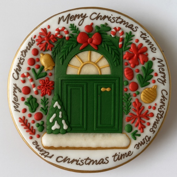 • Ciastko lukrowane Świąteczne drzwi koło No4 roz.L ręcznie robione
