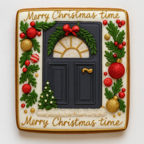 Ciastko lukrowane Świąteczne drzwi kwadr No1 roz.L ręcznie robione