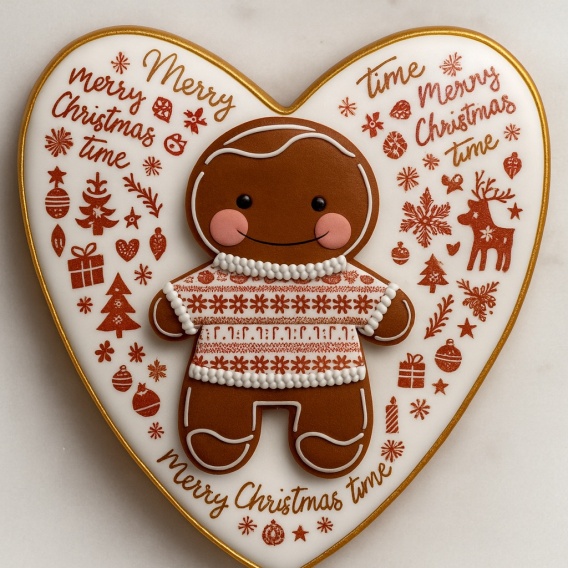 • Ciastko lukrowane Świąteczny ludzik No5 serce roz.L ręcznie robione