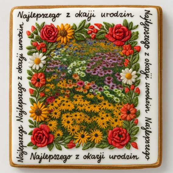 Ciastko lukrowane Życzenia KWIATY OGRÓD roz.L KWADRAT AT No.7 ręcznie robione