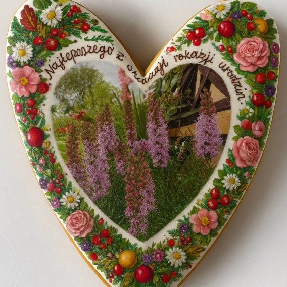 Ciastko lukrowane Życzenia KWIATY OGRÓD roz.L SERCE No.1 ręcznie robione