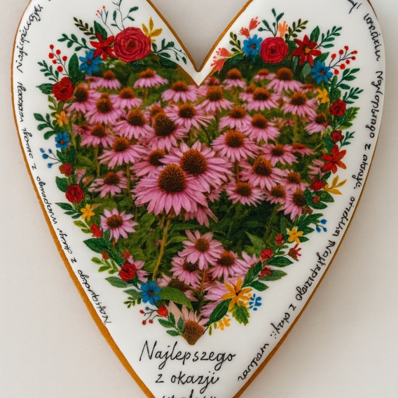 Ciastko lukrowane Życzenia KWIATY OGRÓD roz.M SERCE No.3 ręcznie robione
