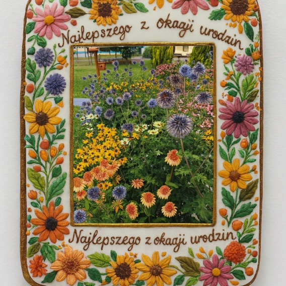 • Ciastko lukrowane Życzenia KWIATY OGRÓD roz.S PION No.2 ręcznie robione