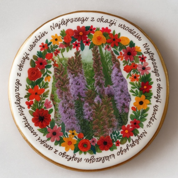 Ciastko lukrowane Życzenia KWIATY OGRÓD roz.XL KOŁO ręcznie robione