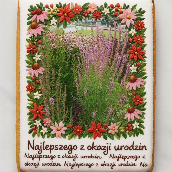 Ciastko lukrowane Życzenia KWIATY OGRÓD roz.XL PION No.4 ręcznie robione