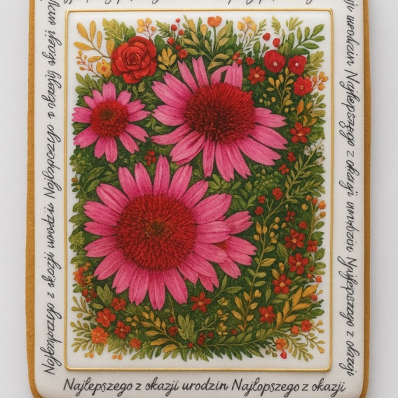 Ciastko lukrowane Życzenia KWIATY OGRÓD roz.XL PION No.6A ręcznie robione