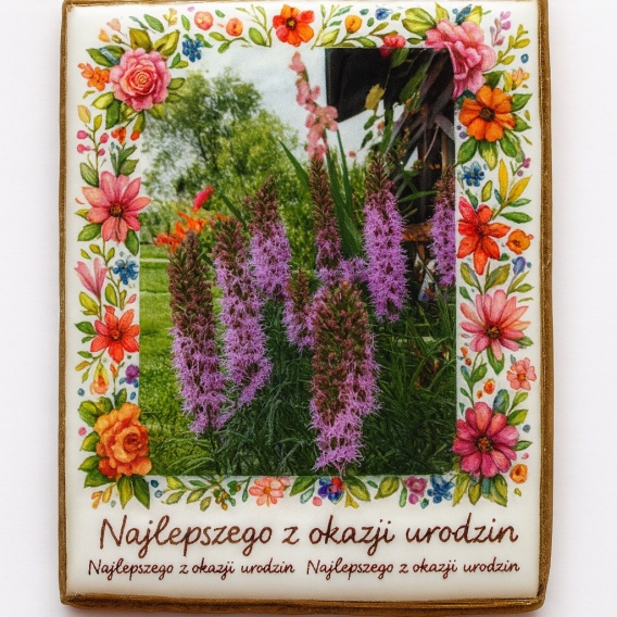 Ciastko lukrowane Życzenia KWIATY OGRÓD roz.XL PION ręcznie robione