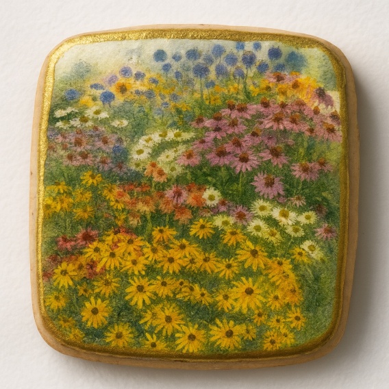 Ciastko lukrowane Życzenia KWIATY POLNE KWADRAT AT No.5 roz.L ręcznie robione