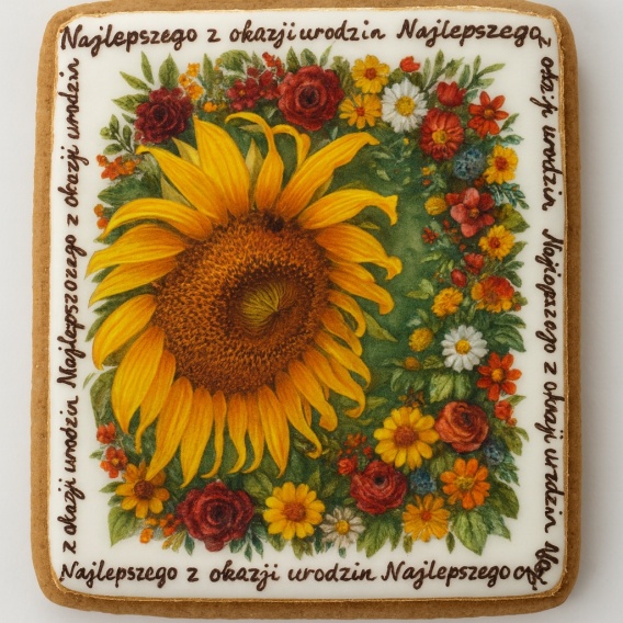 Ciastko lukrowane Życzenia KWIATY SŁONECZNIK KWADRAT AT No.2 roz.M ręcznie robione