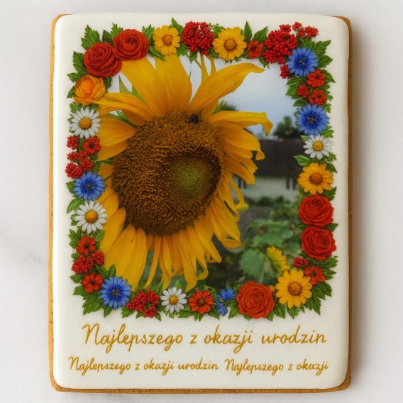 • Ciastko lukrowane Życzenia KWIATY SŁONECZNIK PION No.2 roz.S ręcznie robione