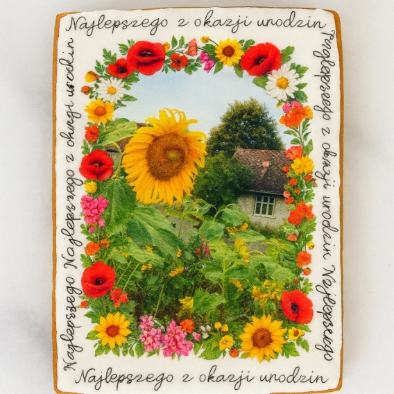 Ciastko lukrowane Życzenia KWIATY SŁONECZNIK PION roz.L ręcznie robione