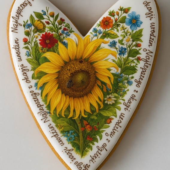 Ciastko lukrowane Życzenia KWIATY SŁONECZNIK SERCE No.2 roz.M ręcznie robione