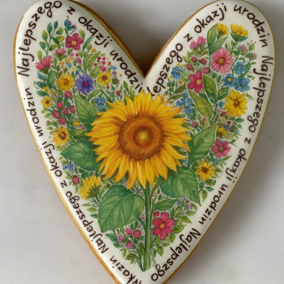 Ciastko lukrowane Życzenia KWIATY SŁONECZNIK SERCE roz.M ręcznie robione