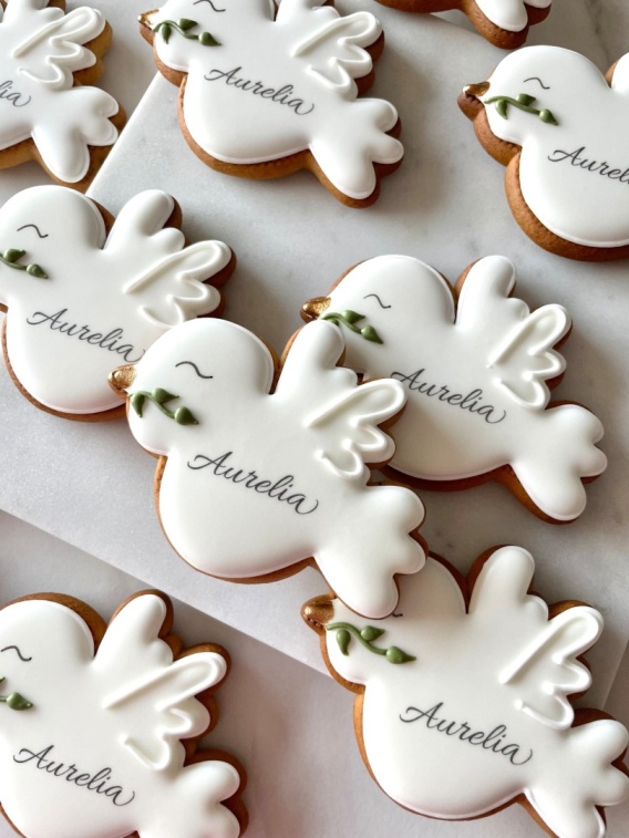 Ciastko lukrowane gołąbek z gałązką imię komunia chrzest podziękowanie prezent dla gości pamiątka