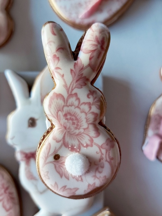 Ciastko lukrowane kolekcja różana zając z puszystym ogonkim do koszyczka S