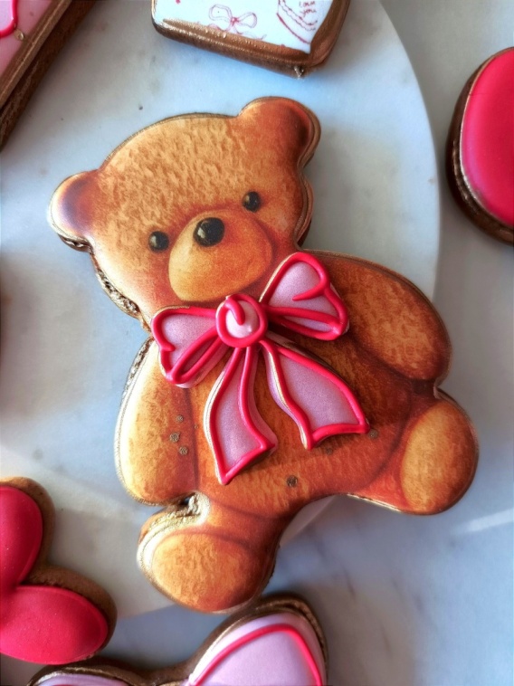 • Pierniczek lukrowany miś misiek misiu z różową kokardą