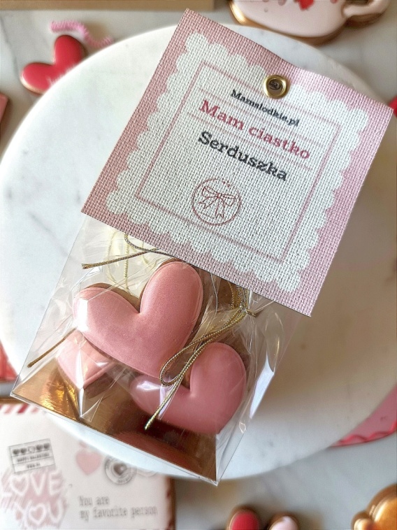 Pierniczek lukrowany serduszka różowe zestaw 5 sztuk