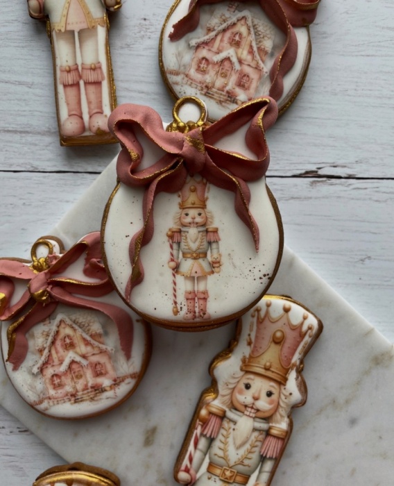Pierniczek świąteczny bombka z kokardą pastelowy dziadek do orzechów