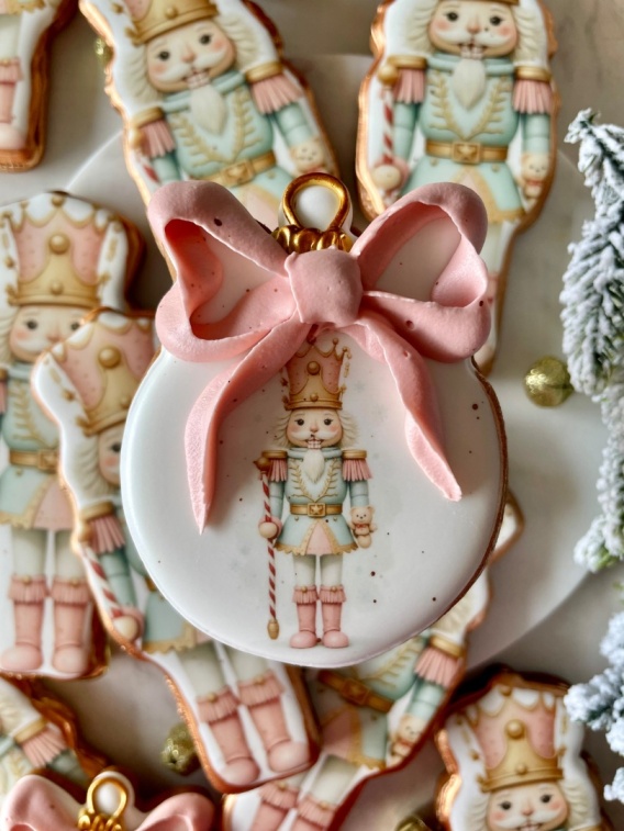 • Pierniczek świąteczny bombka z kokardą pastelowy dziadek do orzechów